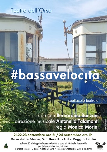 «Cosa vuol dire, viaggiare a bassa velocità? Trovare storie nelle pieghe del tempo, intercettare vite invisibili» aggiunge la regista Monica Morini in merito allo spettacolo per tuttə a partire dai 16 anni «Dall’Emilia al Lazio, dalle Marche alla Puglia, dalla Toscana alla Calabria: è un affresco che abbraccia l’Italia, questo spettacolo, traccia di un viaggio che si dipana dentro anni di ricerca sui treni regionali italiani, durante i quali Bernardino Bonzani si è messo in ascolto di persone di ogni età».