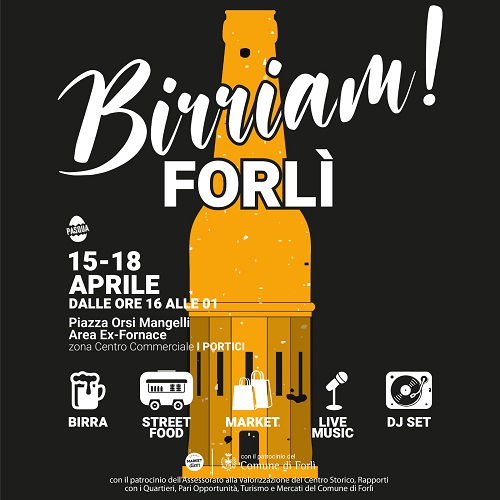FORLÌ – Birra e musica. È questo il binomio di “Birriam – Forlì”, il primo urban street festival di Forlì dedicato alla birra artigianale e alla musica dal vivo. La location è quella della vecchia fornace di Piazza Orsi Mangelli e l’appuntamento è per il prossimo week-end di Pasqua, dal 15 al 18 aprile compresi. Le etichette di birre artigianali del territorio saranno accompagnate da finger food e molto altro. Streetmarket, bancarelle vintage, prodotti fatti a mano, musica e dj-set faranno da cornice a un evento nuovo e ricco di sorprese, dedicato a diverse fasce d’età ma soprattutto ai più giovani.