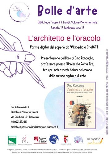 PIACENZA – Sabato 17 febbraio, alle 17, il docente di Editoria Digitale, Informatica Umanistica e Filosofia dell’Informazione dell’Università di Roma Tre, Gino Roncaglia, sarà protagonista di un incontro pubblico nel salone monumentale della Biblioteca Passerini Landi, dove presenterà il libro “L’architetto e l’oracolo. Forme digitali del sapere da Wikipedia a Chat Gpt”, in dialogo con il bibliotecario Francesco Mazzetta.