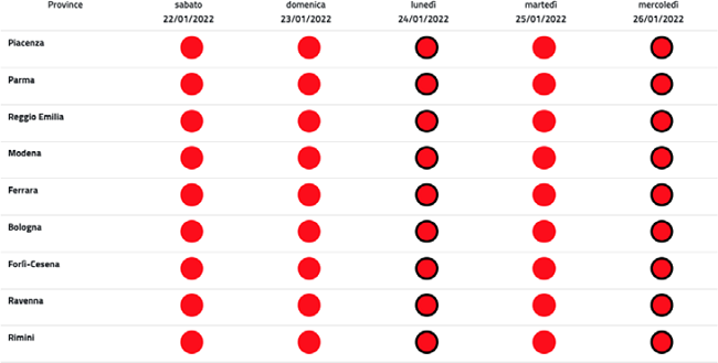 La previsione è emessa da Arpae sulla base del sistema integrato di modellistica meteorologica e di qualità dell’aria.