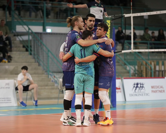 Coach Serafini risponde con: Miselli e Ferrari centrali, Novello opposto a Depalma, Yordanov e Parolari in banda e Catellani libero.