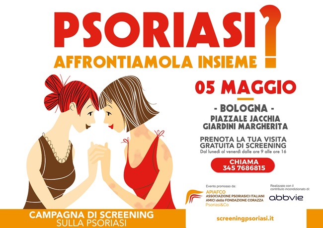 BOLOGNA – A Bologna Domenica 5 Maggio i consulti dermatologici gratuiti su prenotazione dedicati a chi soffre di malattia psoriasica nell’ambito della Campagna di screening sulla psoriasi “Psoriasi? Affrontiamola insieme”.