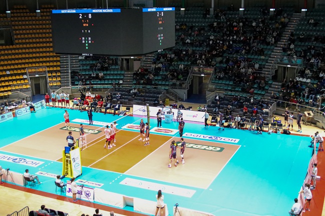 Totalmente diverso l’avvio di secondo set che trova coach Andrea Asta costretto a chiamare time out fin dalle prime battute del parziale, quando Macerata si trova 2-5. Con Lazzaretto e i centrali magistralmente serviti da Longo, i marchigiani dominano la fase centrale del set. Il pubblico è il settimo uomo in campo. Coach Asta scuote i suoi con un cambio di regia e Spagnol e compagni ricuciono lo vantaggio:19-21. Le speranze per i rossoblu si riaccendono e il Pala Dozza scoppia in una bolgia quando Soglia mura il top scorer del set, Lazzaretto, sul 23-24. L’attacco di Margutti però chiude il set e pareggia i conti spegnendo il fervore dei felsinei che ormai credevano alla rimonta.