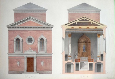 Autori di due grandi acquerelli riproducenti interni fantastici di edifici bolognesi sono Enea Monti e Ugo Gitti, che con qualità elevatissima propongono vedute nello stile di Valentino Solmi, tra i più celebri scenografi dell’epoca e docente dell’Accademia delle Belle Arti di Bologna. All’architetto Raffaele Faccioli si deve invece il progetto per una chiesa, rappresentato in prospetto e sezione.