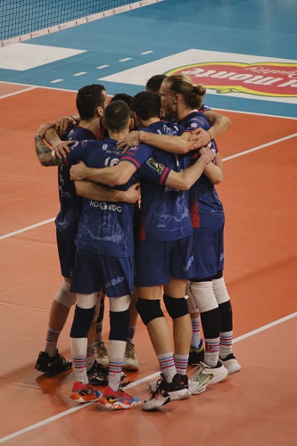 Marzola risponde con Lusetti al palleggio e Lugli opposto, Vinti e Maletti in posto quattro, Orazi e Grottoli i centrali con Gabrielli libero.