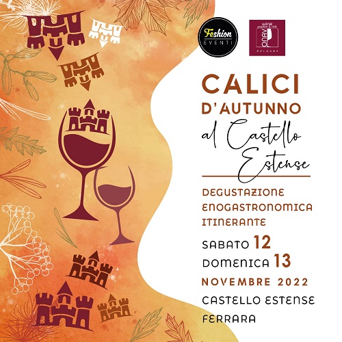 FERRARA – È in programma per sabato 12 e domenica 13 novembre 2022, dalle 17 alle 23, l’ottava edizione di ‘Calici d’Autunno’, che quest’anno si sposta nel Castello Estense di Ferrara.