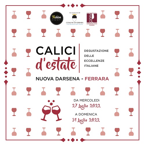 FERRARA – Cinque giorni dedicati al buon vino e alle degustazioni con produttori e selezioni estive delle cantine d’Italia tornano a Ferrara con la manifestazione “Calici d’Estate”. Per la sua terza edizione, la rassegna a cura di FEshion Eventi e patrocinata dal Comune di Ferrara si svolgerà in una nuova location lungo canale del Po di Volano, in via Darsena a Ferrara nelle serate di mercoledì 27, giovedì 28, venerdì 29, sabato 30 e domenica 31 luglio 2022 con orario 18-22.