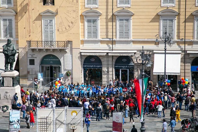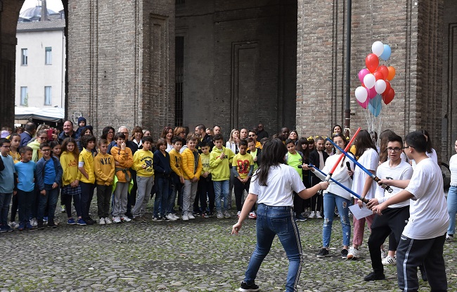 Centinaia di bambini e ragazzi delle scuole del primo e secondo ciclo hanno proposto in mattinata una serie di performance itineranti, frutto del progetto di educazione al riconoscimento e alla valorizzazione delle differenze che si ripete dal 2014 nelle scuole di Parma.