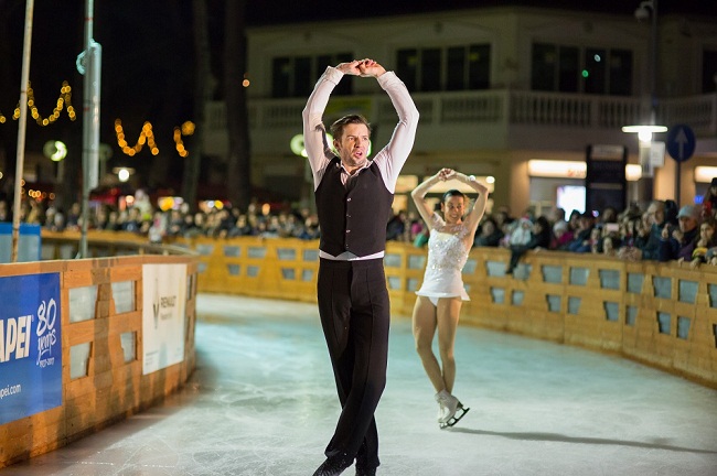 MILANO MARITTIMA – CERVIA (RA) – A festeggiare l’Immacolata, sull’anello di ghiaccio di Mima On Ice sono arrivati ieri i Campioni Nazionali di pattinaggio sul ghiaccio Valentina Marchei e Ondrej Hotarek, che hanno incantato il pubblico duettando sul ghiaccio a suon di musica, stupendo tutti con le loro figure acrobatiche.