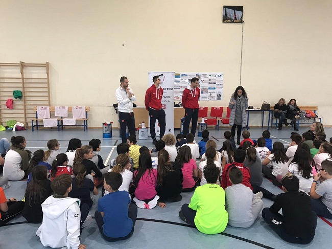 Circa 100 studenti delle classi quarte e quinte della Scuola Primaria di Salvaterra hanno accolto gli atleti ed Emanuele Maccaferri, ideatore della “Scuola di Tifo” che collabora al progetto, nato per divulgare contenuti nutrizionali e pedagogici sul valore e l’importanza di un’alimentazione sana, dello sport, dell’amicizia, della famiglia e delle tradizioni attraverso un percorso di educazione Alimentare, Civica e Motoria.