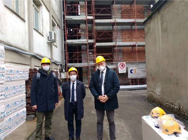 PARMA – Ha dato esito più che positivo il sopralluogo al cantiere di ampliamento del Liceo delle Scienze Umane “Albertina Sanvitale” in piazzale San Sepolcro 3, compiuto stamattina dal Presidente della Provincia Diego Rossi e del Delegato provinciale alla Scuola Aldo Spina, accompagnati dal Dirigente del Liceo Andrea Grossi, i progettisti arch. Gianluca Mora e ing. Giuseppe Stefanini, la responsabile dell’Ufficio Edilizia scolastica della Provincia ing. Paola Cassinelli.