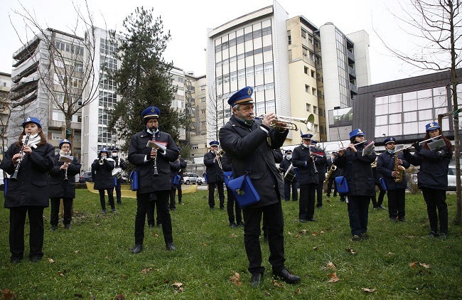 Il corpo bandistico ha registrato a Baggiovara e al Policlinico i brani che saranno trasmessi nel Capodanno di Modena il 31 dicembre. Un augurio ai malati e un grazie a medici e sanitari