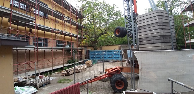 I lavori, partiti alla fine della scorsa estate, dovevano terminare in agosto, ma con la pausa causata dall’epidemia, proseguiranno fino a ottobre; il progetto, comunque, è sviluppato in modo da consentire alla scuola di usufruire di almeno una parte dell’edificio durante l’esecuzione dei lavori.