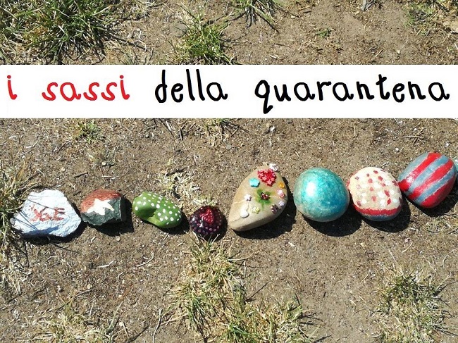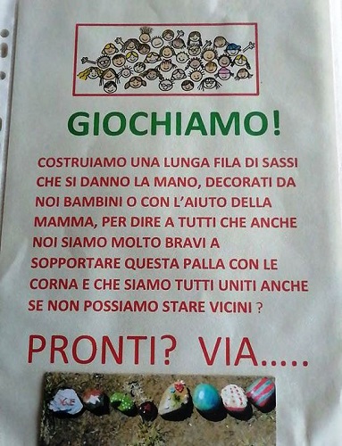 Non siamo abituati a strade vuote ed a spazi all’aperto senza la presenza di bambini che li riempiono con la loro allegria. Per questo, da alcuni giorni, attaccati ai pali iniziano a moltiplicarsi dei volantini che invitano i piccoli a giocare colorando dei sassi.