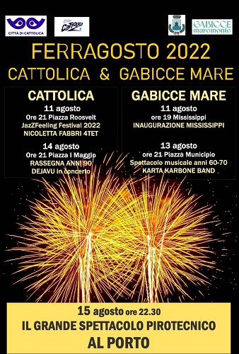 Nel 2022 Gabicce Mare e Cattolica hanno deciso di riunire le forze e la collaborazione fra i due Comuni, diventerà un vero e proprio intervento di promozione di un territorio unico che abbatte i confini regionali e si appresta a presentarsi ai turisti con un’offerta condivisa che fa dell’accoglienza e divertimento il suo cavallo di battaglia. Per questo le due Amministrazioni Comunali intendono promuovere un cartellone unico di eventi, giorni dedicati alla musica e al divertimento che fanno delle Città di Gabicce Mare e Cattolica le protagoniste indiscusse del Ferragosto 2022.