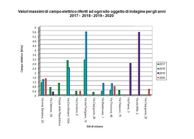 LA RELAZIONE. “I risultati delle misurazioni – si legge nella relazione finale consegnata da Arpae – confermano, in termini di valore medio del campo elettrico, valori al di sotto del valore di attenzione e dell’obiettivo di qualità previsti entrambi dalla normativa pari a 6 V/m. Anche in termini di valore massimo del campo elettrico e del valore massimo delle medie giornaliere i valori sono tutti al di sotto di 6 V/m”. Una curiosità ha riguardato il plesso delle scuole medie Filippini dove, spiegano i tecnici di Palazzo Mancini, le aste in alluminio delle bandiere, poste all’esterno dell’edificio, sfalsavano i dati della rilevazione creando una sorta di “effetto antenna”. Le aste sono state, dunque, sostituite con un materiale differente.