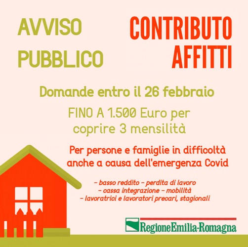 CATTOLICA (RN) – Un contributo per il canone di locazione: è questo l’obiettivo del bando regionale “Casa, sostegno per pagare l’affitto”. Il Comune di Cattolica ha pubblicato sul proprio sito l’avviso pubblico e la relativa modulistica che dovrà essere presenta entro il prossimo 26 febbraio 2021. A beneficiarne potranno essere famiglie e persone in difficoltà economica che, anche a causa dell’emergenza sanitaria, hanno subito la perdita o una consistente riduzione del reddito e non riescono a pagare il canone di locazione della casa in cui abitano.
