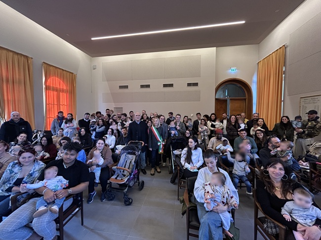 Sindaca Foronchi e Assessore Romeo danno il benvenuto ai 76 bimbi e bimbe del 2025 a palazzo Mancini