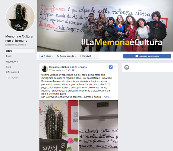 Link alla pagina FB: https://www.facebook.com/memoria.cultura/