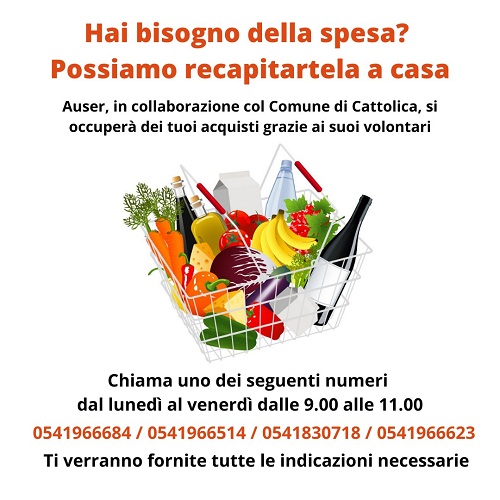 CATTOLICA (RN) – Attivo da domani un nuovo servizio per il recapito a casa della spesa ai cattolichini che vivono, anche temporaneamente, un momento di disagio e sono impossibilitati a provvedere ai propri acquisti autonomamente.