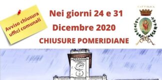 CATTOLICA (RN) - Con decreto sindacale (n. 17 del 16 dicembre 2020) viene disposta la chiusura pomeridiana degli uffici comunali nelle giornate di giovedì 24...