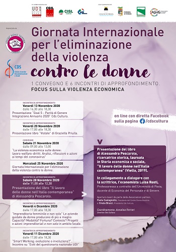 Sabato 28 novembre dalle 11.00 alle 12.30 Alessandra Pescarolo autrice di “Il lavoro delle donne nell’Italia contemporanea” presenta il suo libro in una conversazione con l’economista Luisa Rosti dell’Università di Pavia.