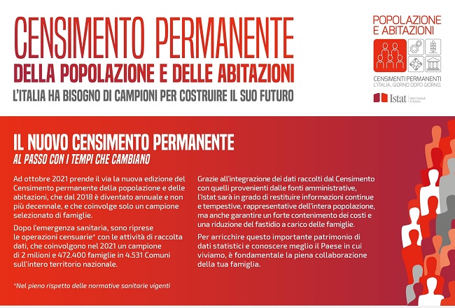 – il numero verde Istat 800 188 802, attivo dall’1° ottobre al 23 dicembre, dalle ore 9 alle ore 21