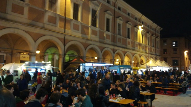 Davvero amplissima l’offerta gastronomica, distribuita in aree tematiche. In piazza della Libertà troviamo Food Truck in Libertà, con menù che spaziano dalle alette di pollo piccanti alle bombette pugliesi, dall’american barbecue allo gnocco fritto, dagli hamburger gourmet ai panini con mora romagnola, dai passatelli alla piada burger, dalle polpette alle tigelle farcite.
