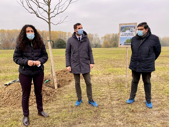 Nelle foto: Sindaco Enzo Lattuca, Assessora alla Sostenibilità ambientale Francesca Lucchi e il Dirigente del Settore comunale Tutela dell’Ambiente e del Territorio Giovanni Fini alla presentazione del bosco urbano
