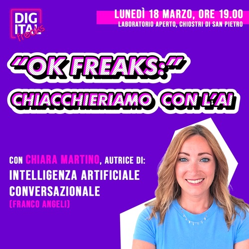 Lunedì 18 marzo, ore 19: “OK Freaks: chiacchieriamo con l’AI” con Chiara Martino.