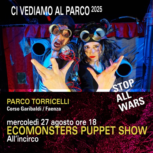 Mercoledì 27 agosto alle ore 18 il Parco Torricelli in Corso Garibaldi a Faenza accoglierà lo spettacolo per tutte le età Ecomonster Puppet Show della Compagnia All’incirco nell’ambito del progetto di socialità Ci vediamo al Parco a cura del Teatro Due Mondi.