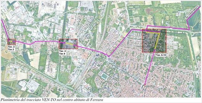 Il tratto della ciclovia VenTo che attraverserà Ferrara per una lunghezza di circa 5,6 chilometri, si svilupperà quindi proprio dalla via Modena, lungo la pista ciclabile radiale di collegamento alla città fino al sottopasso ferroviario, e da qui proseguirà in viale Po sul percorso ciclopedonale esistente fino all’incrocio con via Belvedere, per poi salire sul rilevato delle mura nord muovendosi sul percorso ciclopedonale che si sviluppa lungo tutto l’anello murario cittadino. Raggiunta la Porta degli Angeli scenderà in corso Ercole I d’Este percorrendolo fino al Castello estense. Per il ritorno il tracciato ripercorrerà, quindi, corso Ercole I d’Este dal Castello alla Porta degli Angeli, svoltando poi in via Orlando Furioso e, attraverso il fornice di via Azzo Novello, si ricollegherà al percorso ciclabile già esistente nel parco Urbano, fino all’argine del fiume Po.