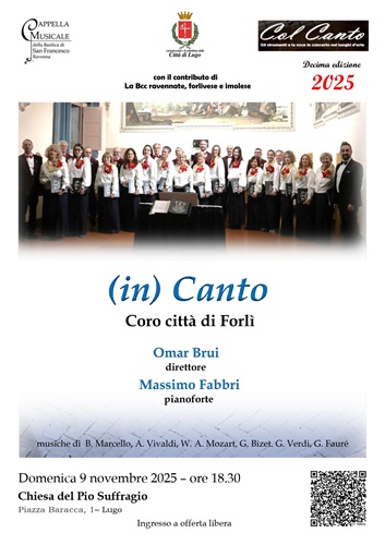 Il Coro Città di Forlì, diretto da Omar Brui e accompagnato al pianoforte da Massimo Fabbri, proporrà un programma che spazierà dal Barocco all’Ottocento. Domenica 9 novembre 2025 alle ore 18.30, presso la chiesa del Pio Suffragio di Lugo.