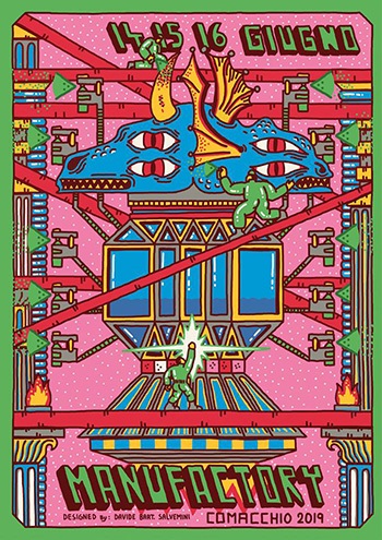 Promosso dall’Associazione di promozione sociale Spazio Marconi, gestore del FabLab MakeInCo di Comacchio, il Manufactory Festival nasce dalla necessità di valorizzare l’arte urbana nel comune di Comacchio, arrivata nel 2005 quando uno dei più celebri street artist ha posato i suoi pennelli su alcuni edifici del paese: BLU. Grazie all’iniziativa culturale “Spina Festival”, Comacchio vanta opere di grande prestigio non solo di BLU, ma anche di Ericailcane e dell’artista inglese Lucy McLauchlan.