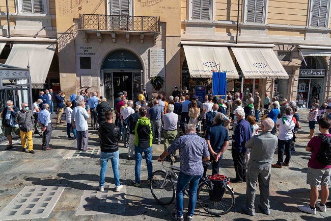 Al momento hanno preso parte le massime autorità civili e militari, assieme ai parenti delle vittime ed ai rappresentanti delle Associazioni Partigiane, con loro anche lo Dsèvod, al secolo Maurizio Trapelli, maschera legata alla tradizione della città.