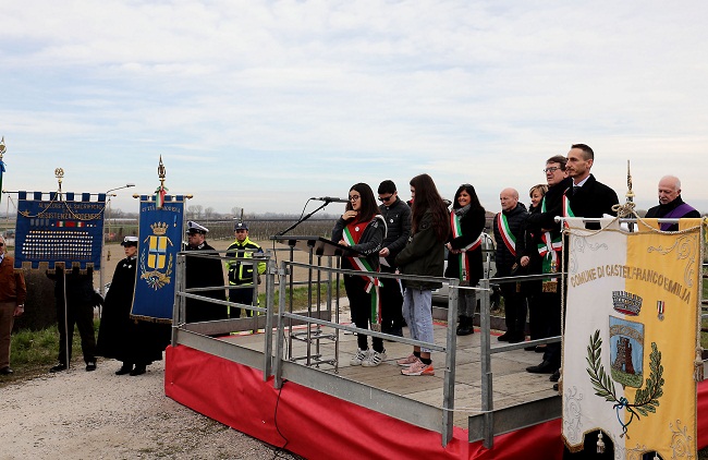 MODENA – Sulle note di “Bella Ciao” della banda cittadina, ieri mattina (domenica 10 marzo), è stato commemorato l’eccidio nazifascista del ponte del Navicello. La cerimonia è stata organizzata dai Comuni di Modena, Bomporto e Nonantola, insieme ai Comitati comunali permanenti per la memoria e le celebrazioni.