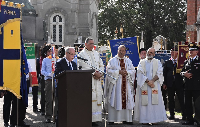 Il Prefetto di Parma Giuseppe Forlani ha ricordato l’impegno del Generale Dalla Chiesa verso i giovani. “Non si stancava di incontrare i ragazzi delle scuole. In un ultimo incontro, con il suo carisma, con la sua figura autorevole aveva chiesto ad un gruppo di studenti – cercate qualcosa in cui credere. La sua figura ancora oggi è in grado di suscitare il rispetto per la legalità” ha detto durante l’orazione.