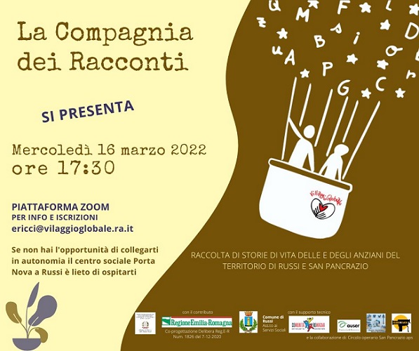 RUSSI (RA) – Mercoledì 16 marzo alle ore 17.30 prenderà ufficialmente avvio il progetto di contrasto alle solitudini involontarie degli anziani della “Compagnia dei Racconti”.
