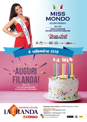FAENZA (RA) – Sabato 8 settembre allo Shopping Center La Filanda – Via della Costituzione, 28, ex Area Neri, Faenza (RA) – si terranno le selezioni provinciali del prestigioso concorso di bellezza Miss Mondo Italia e si festeggerà il compleanno della Galleria Commerciale.