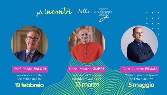 Temi di grande rilevanza contemporanea, che caratterizzano le cronache quotidiane e che la Fondazione Cassa di Risparmio di Cento ha scelto di affrontare: come Fondazione ci impegniamo quotidianamente per dare sostegno alla nostra comunità. In questa occasione abbiamo scelto di promuovere momenti specifici, per approfondire tematiche legate alle sfide di questo periodo storico che stiamo vivendo, caratterizzato da profondi cambiamenti e incertezze. Lo facciamo proponendo incontri che avranno come protagonisti autorevoli ospiti che sapranno affrontare in maniera semplice ed efficace i temi proposti” sono le parole della Presidente della Fondazione Cassa di Risparmio di Cento, Raffaella Cavicchi.
