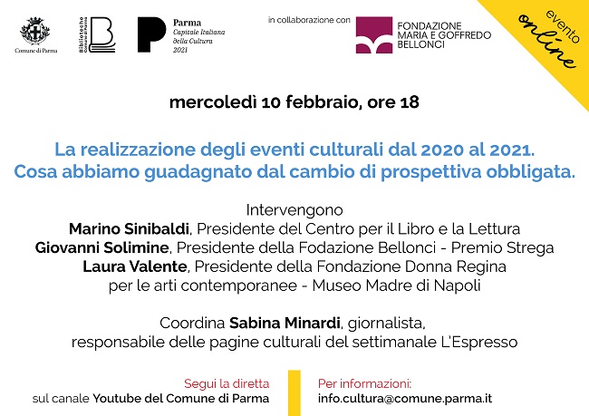 PARMA – Dopo il successo riscosso dall’incontro con i sei autori finalisti del Premio Strega 2020, tenutosi lo scorso giugno al cinema Astra di Parma, l’assessorato alla Cultura del Comune di Parma rinnova la collaborazione con la Fondazione Maria e Goffredo Bellonci promuovendo due webinar gratuiti, nell’ambito di Parma Capitale Italiana della Cultura 2020+21,che invitano il pubblico a prendere parte a due riflessioni di estrema attualità insieme a grandi nomi del panorama culturale e letterario italiano.