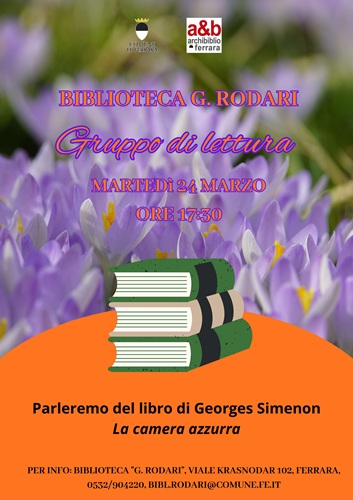 FERRARA – Sarà dedicato al libro “La camera azzurra” di Georges Simenon il nuovo incontro del gruppo di lettura della biblioteca comunale Rodari in calendario per martedì 24 marzo 2026 alle 17:30 nella sede di viale Krasnodar 102, a Ferrara.