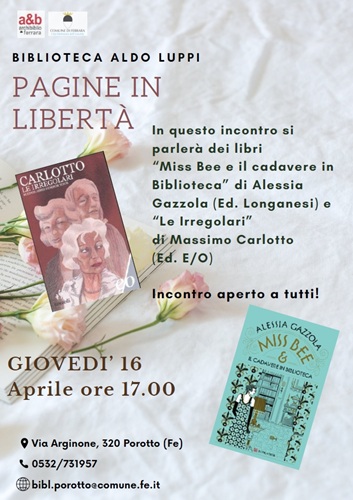 FERRARA – È in programma per giovedì 16 aprile 2026, alle 17:00 il nuovo appuntamento del gruppo di lettura “Pagine in Libertà” alla biblioteca comunale Aldo Luppi (via Arginone 320, Porotto).