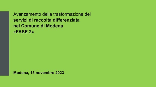 Il complesso delle attività programmate dal gestore nella Fase 2 su richiesta del Comune è stato presentato in una conferenza stampa dal sindaco Gian Carlo Muzzarelli e dall’assessora all’Ambiente Alessandra Filippi, insieme ai tecnici comunali, sottolineando come, pur riconoscendo l’impegno della maggior parte dei cittadini e i buoni risultati relativi a quantità e qualità dei rifiuti raccolti, il servizio non risponda ancora completamente alle aspettative, soprattutto in termini di decoro e pulizia della città. Quindi, senza modificare il modello, servono ulteriori miglioramenti.