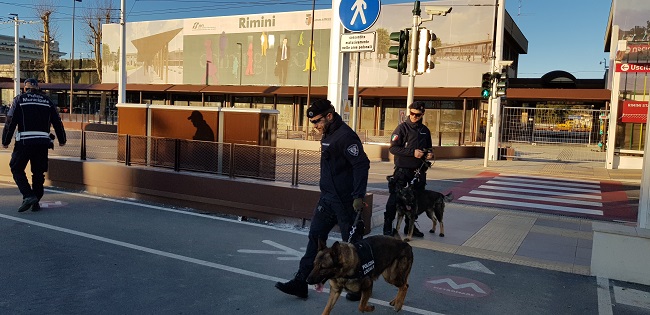 RIMINI – Si è conclusa ieri una vasta operazione per il controllo del territorio condotta dalla Polizia Locale di Rimini. Un intervento importante ed esteso, che ha coinvolto le 4 unità cinofile dei vigili e 21 uomini e donne in divisa, tra cui anche alcuni in abiti civili. L’operazione programmata, è stata organizzata per dare una risposta concreta ad alcuni esposti e segnalazioni giunte in comando, per controllare le aree sensibili della città, con particolare riferimento al centro urbano. Un intervento trasversale, che fa parte dei servizi periodici di controllo condotti dalla Polizia Locale, con attività specifiche, a cui ha partecipato anche la squadra annonaria per il controllo delle attività commerciali.