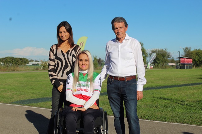 L’evento si è svolto alla presenza dell’Assessora allo Sport del Comune di Reggio Emilia Stefania Bondavalli e dei rappresentanti dei principali partner che sostengono l’attività della scuola handbike, Conad e Tecnocasa.