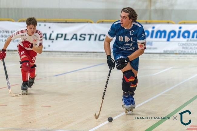 CORREGGIO (RE) – Vittoria in rimonta per la BDL Mini Motor Correggio, che va sotto di due reti nella ripresa ma riesce nel sorpasso fino al 6-4 finale. Contro il Trissino, al PalaDante, decisive le doppiette di Edoardo Righi (nella foto) e Matteo Holban e le reti di Santi Sala Pallares e Diego Casari. Successo che, dopo la prima giornata, porta in dote tre punti nel girone A della Coppa Italia di Serie A2 e il vertice del raggruppamento visto il pareggio 6-6 tra Seregno e Montebello (riposava il Valdagno). Prima vittoria in terra italiana per Ramon Pardo e Santi Sala Pallares: il tecnico e il giocatore spagnolo hanno fatto il loro esordio in gare ufficiali con la casacca biancoblu e hanno potuto celebrare il bottino pieno finale.