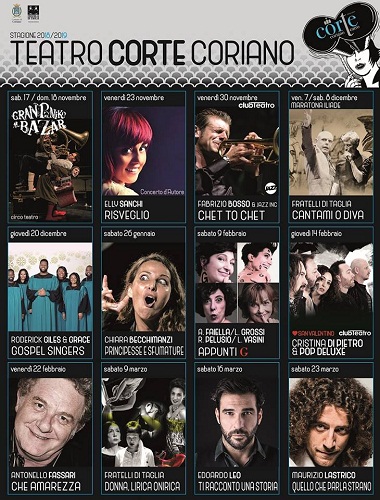 ufficio teatro 0541 658667 (solo nei giorni di spettacolo) / corianoteatro@gmail.com/ www.corianoteatro.it / FB teatro corte coriano /