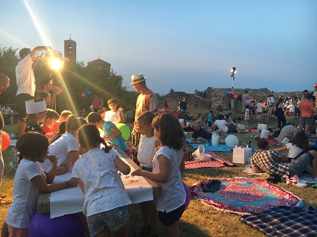 Alle ore 20.15 si parte con il PicNic a piedi nudi sull’erba totalmente plastic free con i cestini a Km0 preparati da La Cantinetta della CorTe (pasta fredda con pomodorini, tonno e formaggio; un panino con prosciutto cotto; un panino con ciauscolo al naturale; come dolce un panino con noccio e ciocco, crema spalmabile bio La Madre Terra e frutta di stagione) e le proposte Street Food. Senza plastica e con tanta creatività il Castello di Coriano dove poter divertirsi con la fantasia grazie ai Laboratori Creativi a cura di Cristina Bonavitacola de La Bottega delle Idee e Laboratori Pinocchio, disegni e pitture estemporanee, creazione di oggetti e trucchi tematici guidati da Inès Cavuoti, Eleonora Protti e Cecilia Romani. Sempre attiva e aggiornata libreria mobile Viale dei Ciliegi 17 gestita grazie alla preziosa collaborazione di AVIS comunale Coriano.