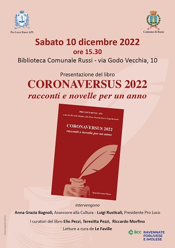 RUSSI (RA) – La seconda puntata del contrasto all’isolamento prodotto dal Coronavirus si completerà sabato 10 dicembre alle ore 15,30 presso la Biblioteca comunale di Russi con la presentazione del libro “CORONAVERSUS 2022 racconti e novelle per un anno“.